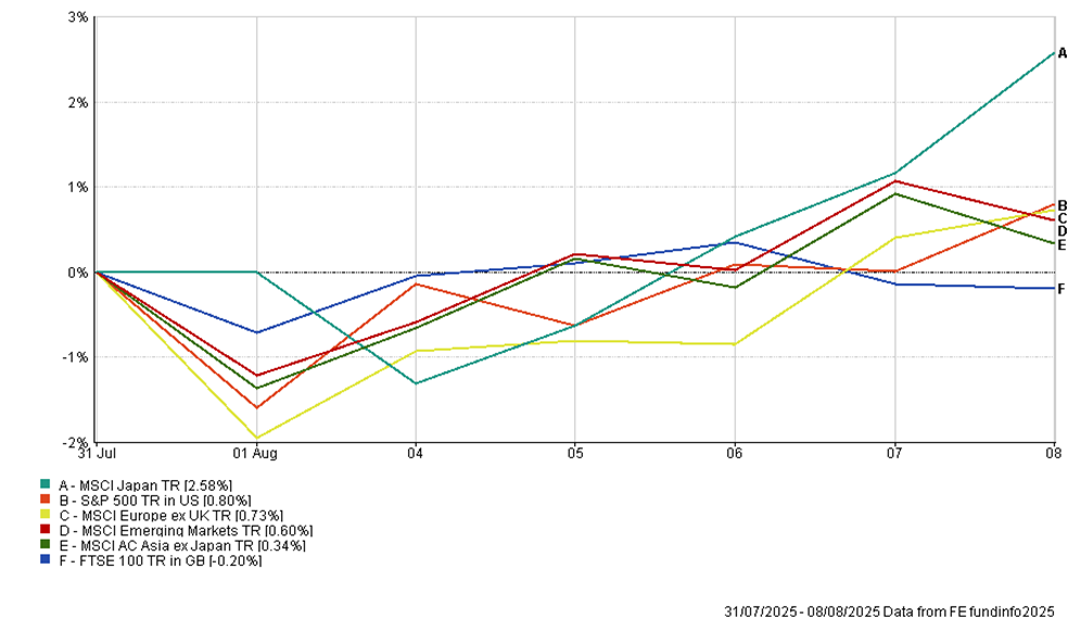 After last Friday’s wobble, markets regained their footing this week. Global equities are back within sight of record highs, helped by a combination of lighter economic data flow, steady earnings, and a dose of geopolitical optimism. Reports that President Trump and President Putin will meet in Alaska later this month to discuss a possible resolution to the Ukraine war have lifted European markets in particular, where sentiment has been weighed down by the conflict’s drag on growth and energy costs. While Ukrainian and European leaders have stressed that any deal must involve Kyiv and protect its sovereignty, the prospect of even tentative peace talks was enough to give risk assets a tailwind.