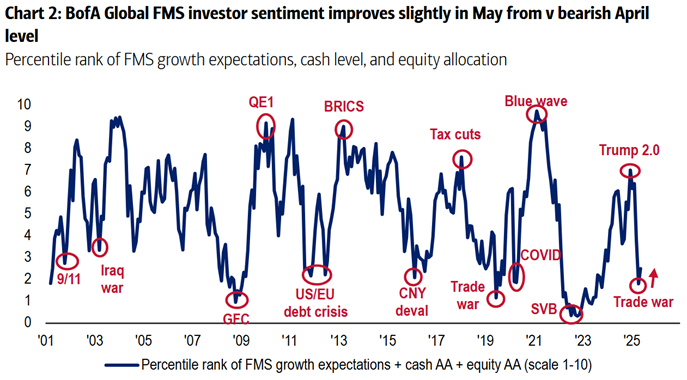Parking tariff policy for a moment (given the outlook is at best speculative) its interesting that 75% of BofA fund managers recently polled believed that the projected H2 2025 Tax cuts will likely increase the US deficit, but would also be a significant net positive for equities.
