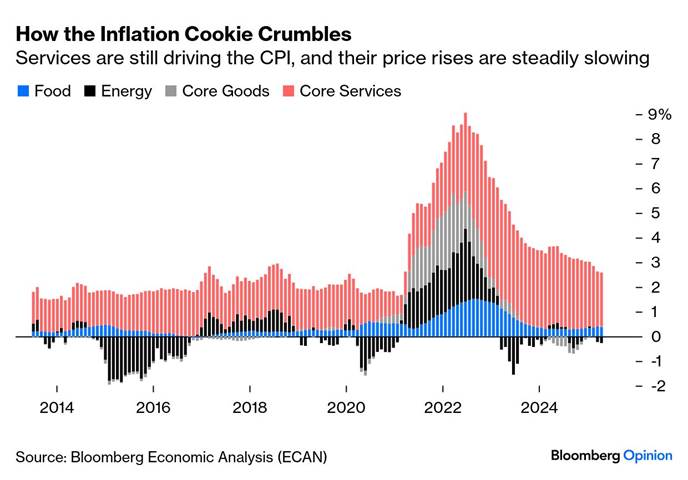 A key factor of the core components of the data is the ‘sticky’ services inflation, which as you can see, is slowly (slowly) trending down…