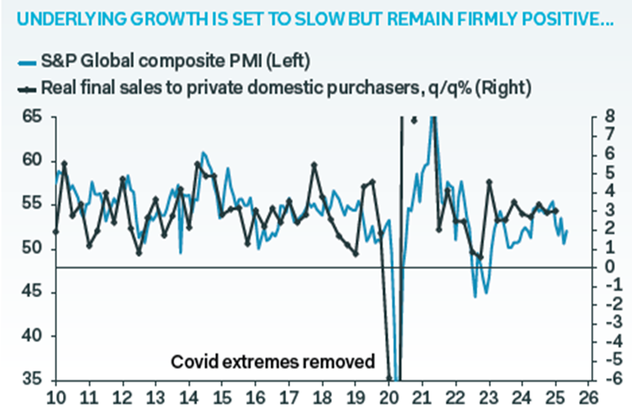 That said, there were a few less encouraging details. Price pressures appear to be building again, especially in manufacturing, where output prices hit their highest levels since 2022. Services inflation also firmed. Early evidence suggests that the cost of new tariffs is being passed on to consumers rather than absorbed by companies, which could complicate the Fed’s job if it continues. Employment readings softened slightly, hinting at a cooling labour market. But overall, this PMI print will likely reassure equity investors that the economy still has momentum. Bond markets, however, may be less comfortable, with sticky inflation potentially keeping yields elevated.