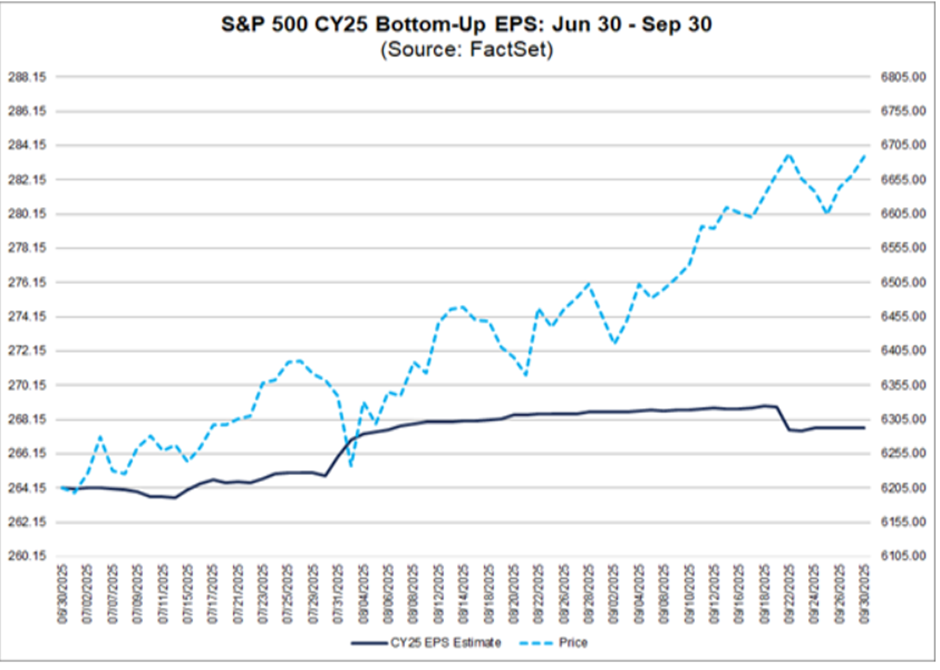 With politics providing more noise than signal, attention now turns to earnings season, and this time, expectations have actually been drifting higher rather than lower. For the first time since late 2021, analysts have raised aggregate EPS estimates for the S&P 500 during the quarter, rather than cutting them. It’s only a modest 0.1% increase, but it breaks a long run of downgrades and hints at quiet confidence in corporate resilience.