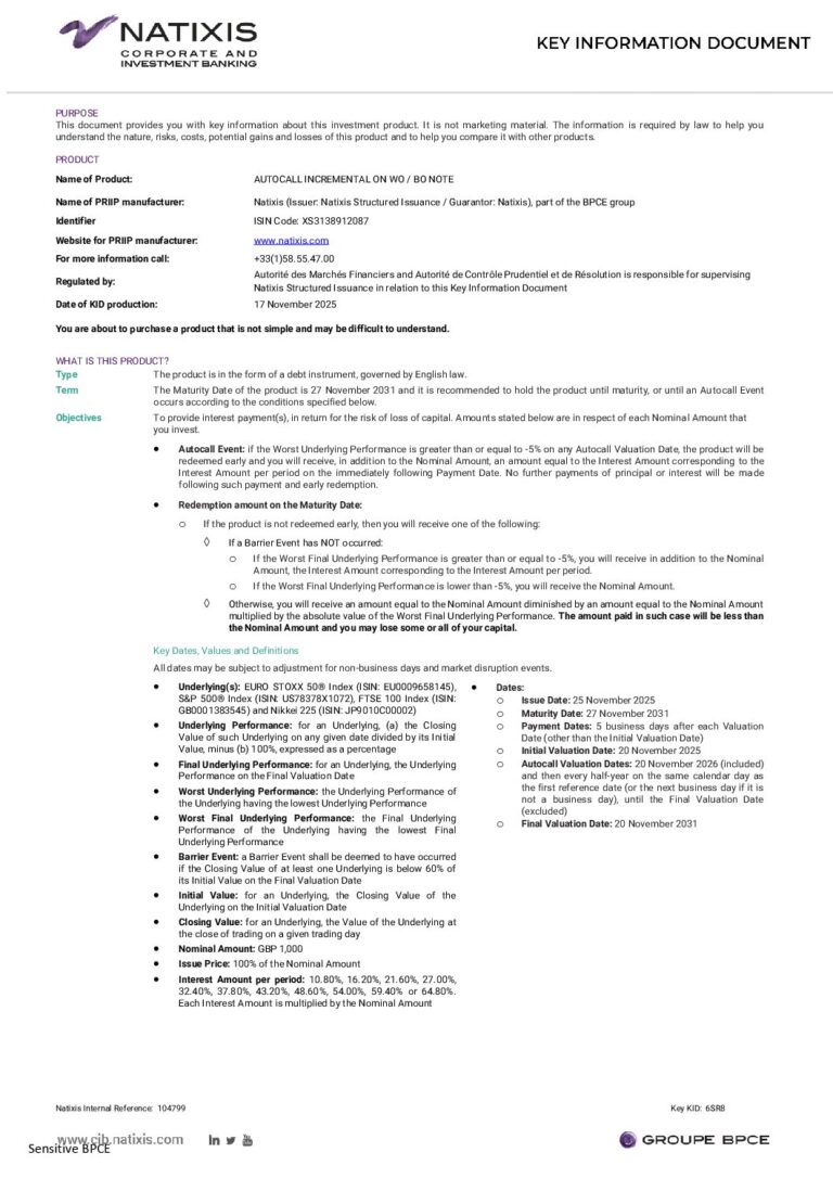 KID – Natixis Developed Indices Classic Autocall November 2025 GBP (XS3138912087)